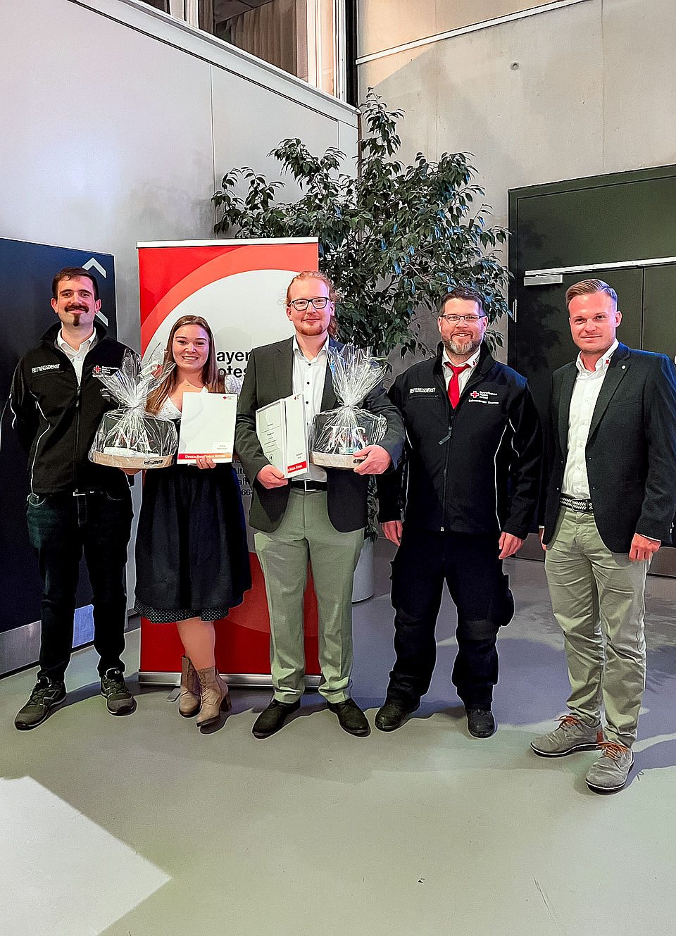 Gemeinsam mit ihren Eltern, Leiter Rettungsdienst Fabian Heierhoff (rechts) sowie den Praxisanleitern Max und Tom haben wir die beiden begleitet und diesen wichtigen Schritt gefeiert.
