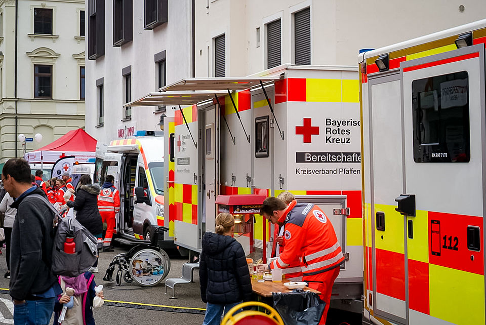 Darüber hinaus war das BRK mit einem großen Programm aktiv: Die mobile Wache, die im Katastrophenfall als ambulante Praxis dienen kann, wurde ebenso vorgestellt wie der Rettungswagen mit medizinischer Vorführung. Der Kriseninterventionsdienst klärte mit einem interaktiven Spiel über seine wichtige Arbeit auf, während die Ausbildungsabteilung den Besucherinnen und Besuchern die Möglichkeit bot, ihre Kenntnisse in der Herz-Lungen-Wiederbelebung aufzufrischen.